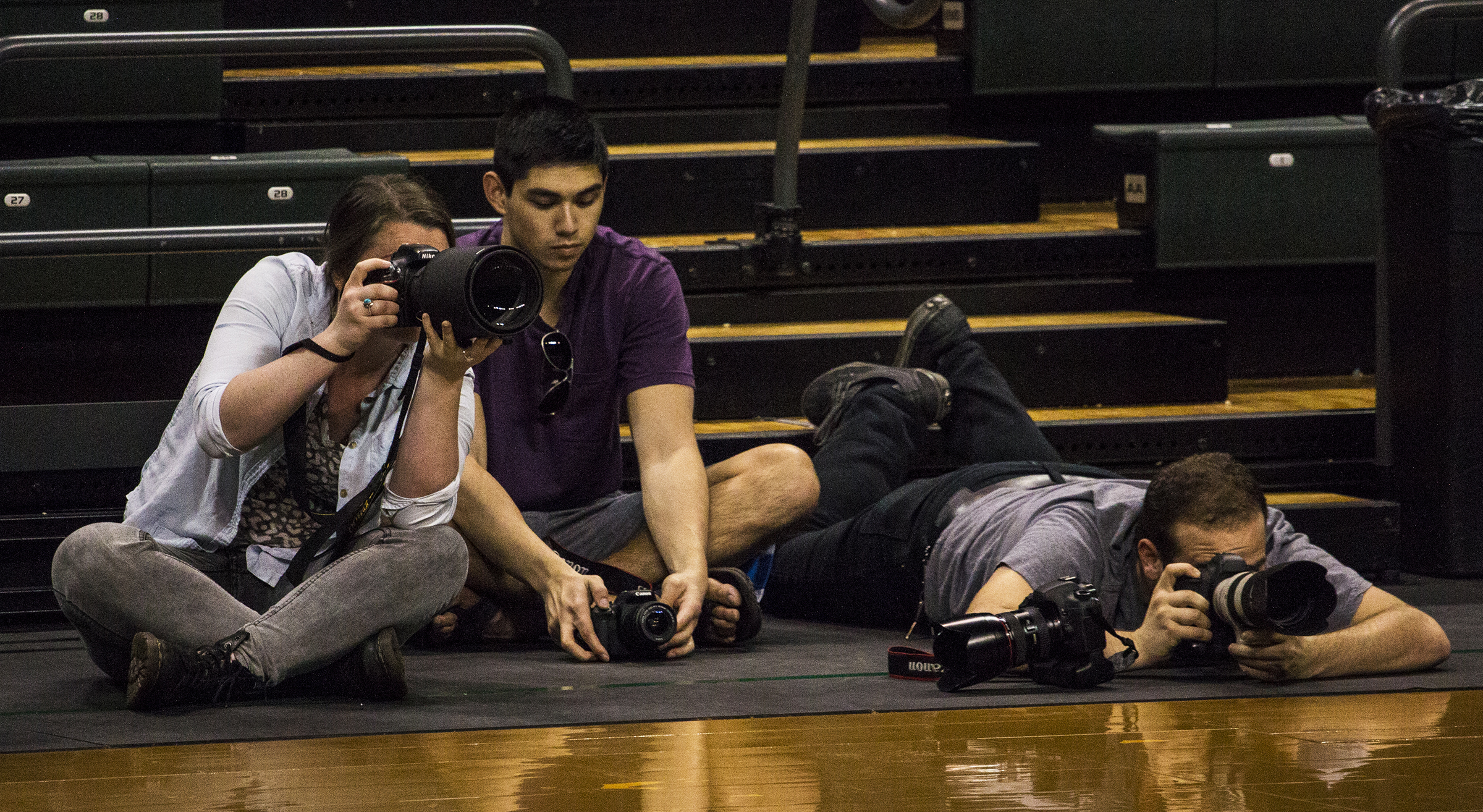 University of Oregon seniors Elora Overby and Andy Abeyta photograph an Oregon Acrobatics and Tumbling meet for KVAL.com. Overby chose to challenge herself during the meet and focus on the faces of those competing rather than the overall athletic event.