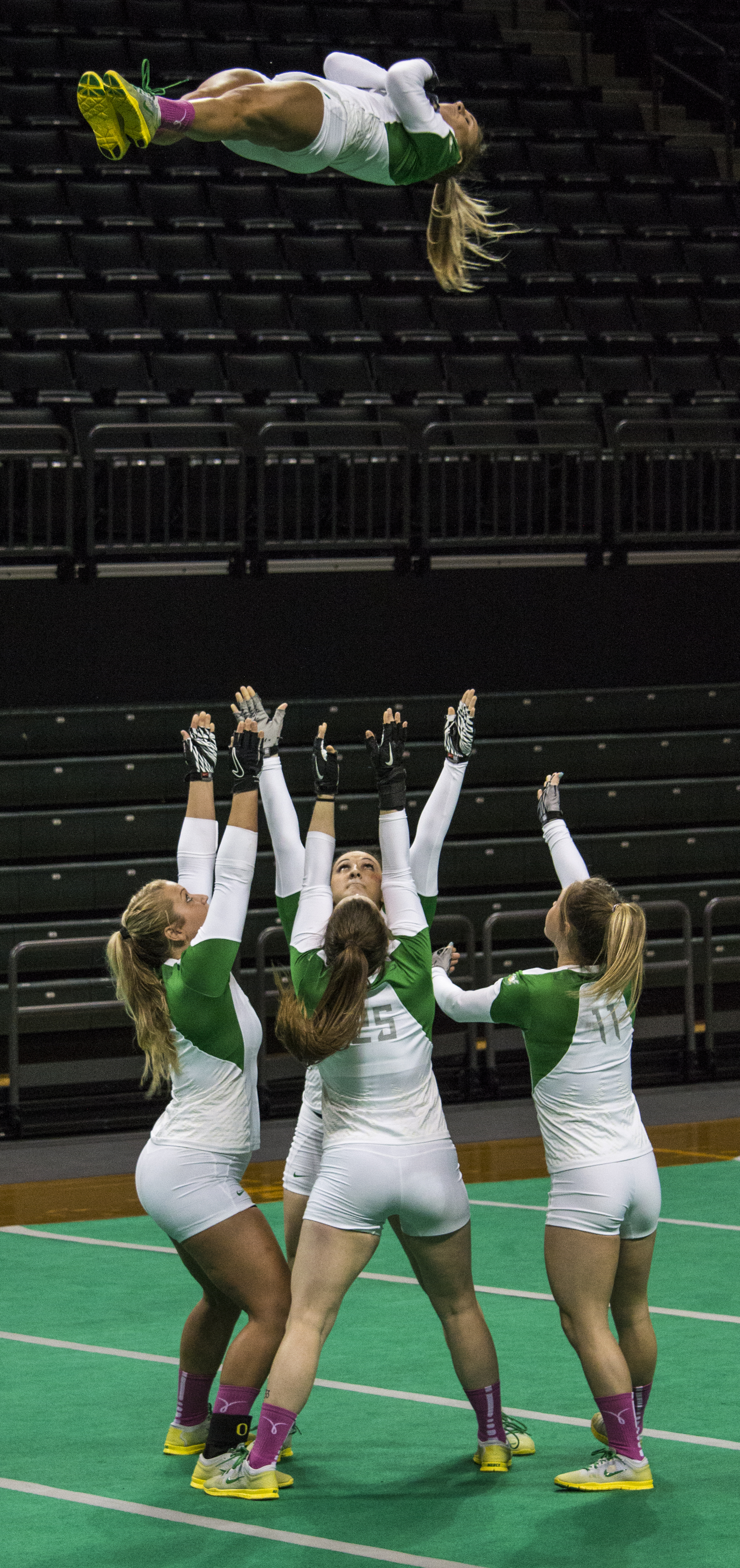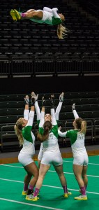 University of Oregon Acrobatics and Tumbling go through a routine. Baylor Bears defeated the Oregon Ducks 279.77-278.825 at Matthew Knight Arena.
