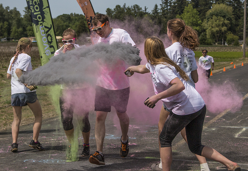 The main draw for participants is the non-toxic, dyed cornstarch that is thrown at them by volunteers as they run the course. In addition, each participant receives a packet of colored dye to throw at other runners with a range of colors to choose from.