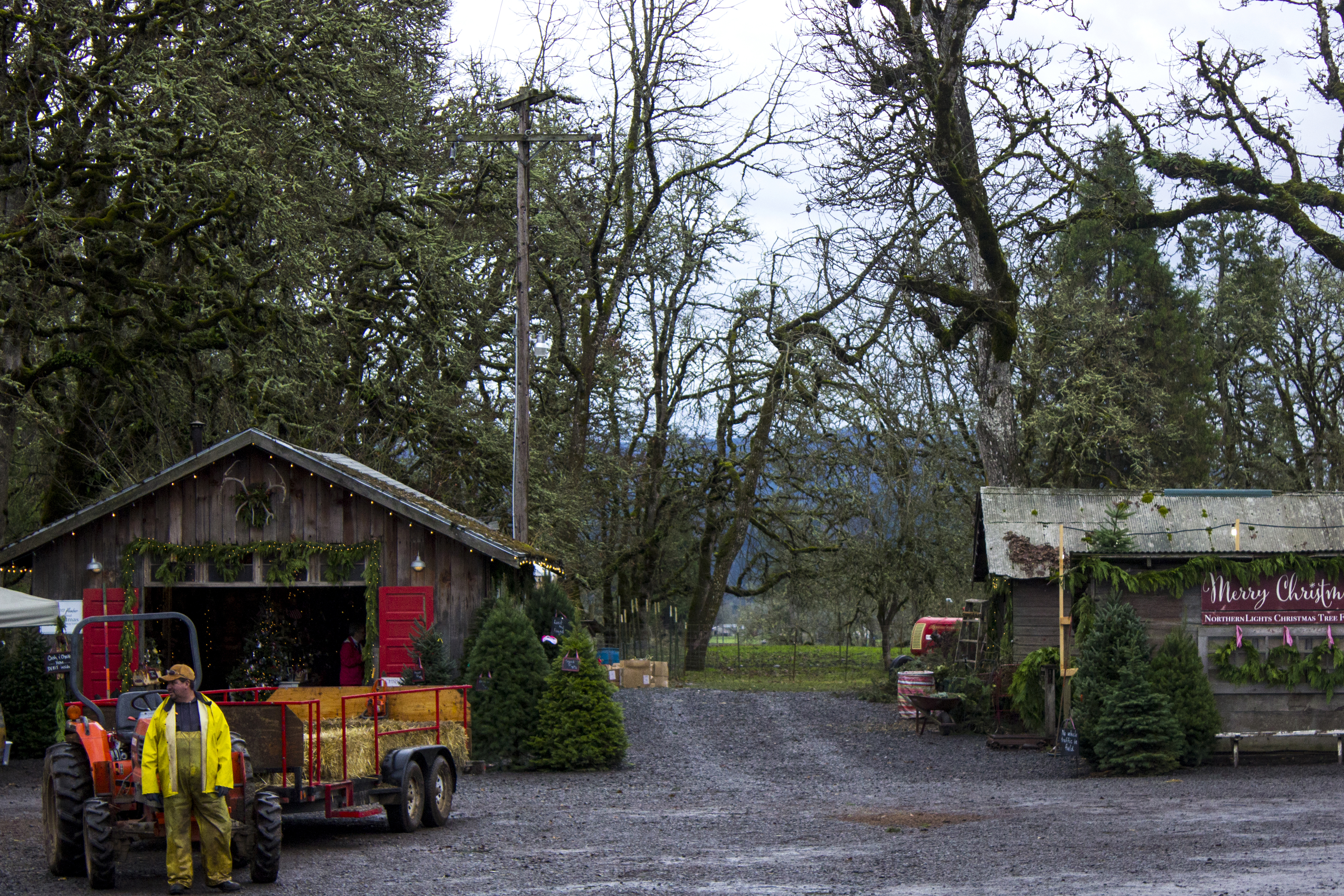 Northern Lights Christmas Tree Farm in Pleasant Hill, Oregon has over five different types of Christmas trees to choose from. The customer can cut the tree themselves or opt to have one of the staff cut it for them. For a few dollars more the customers can even pay to have the all of the loose needles shaken from the tree and then bound together with string.
