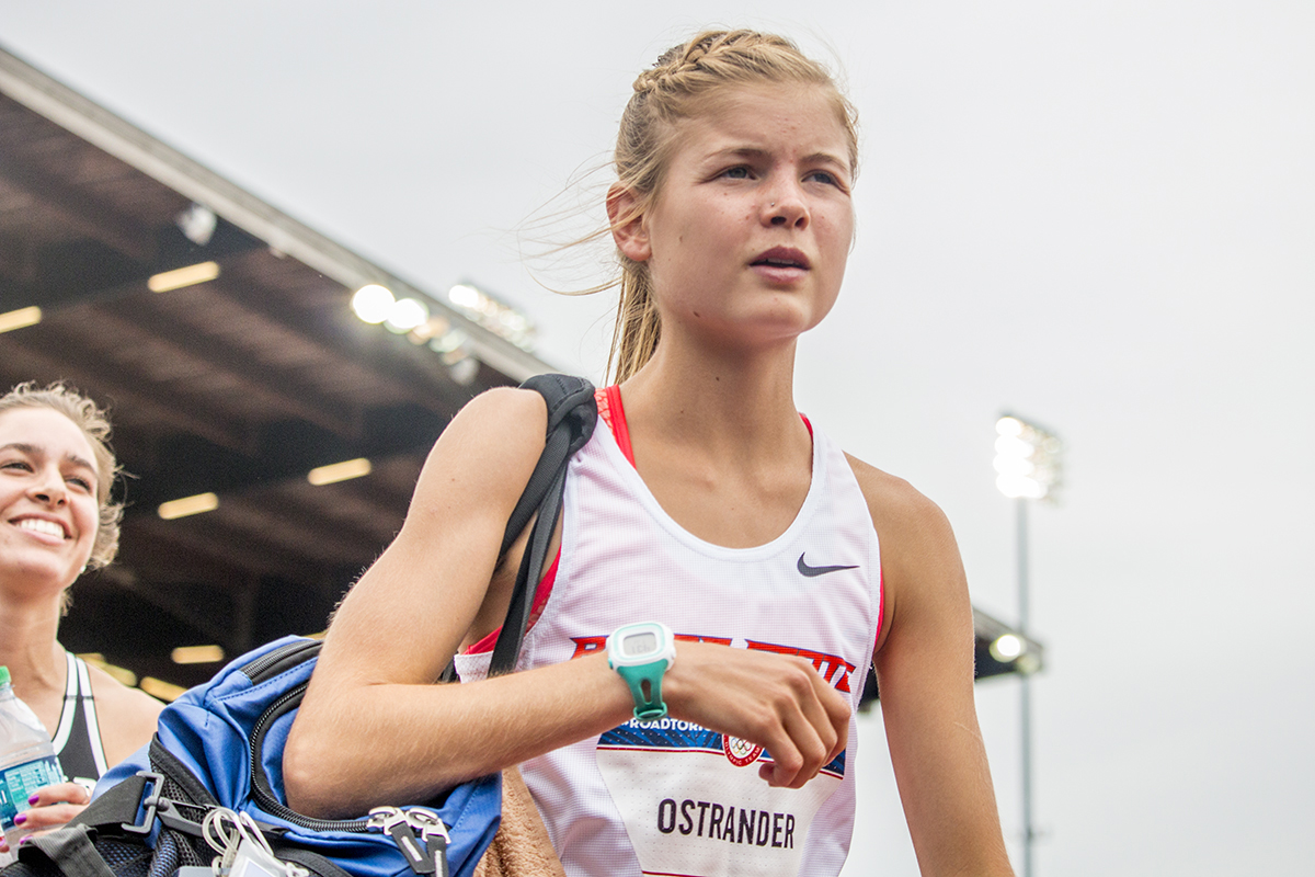 Boise State Bronco Allie Ostrander prepares for the first round of the women’s 5,000 meter run. Day Seven of the U.S. Olympic Trials Track and Field were held Thursday at Hayward Field in Eugene, Ore. and will continue through July 10. Photo by Katie Pietzold