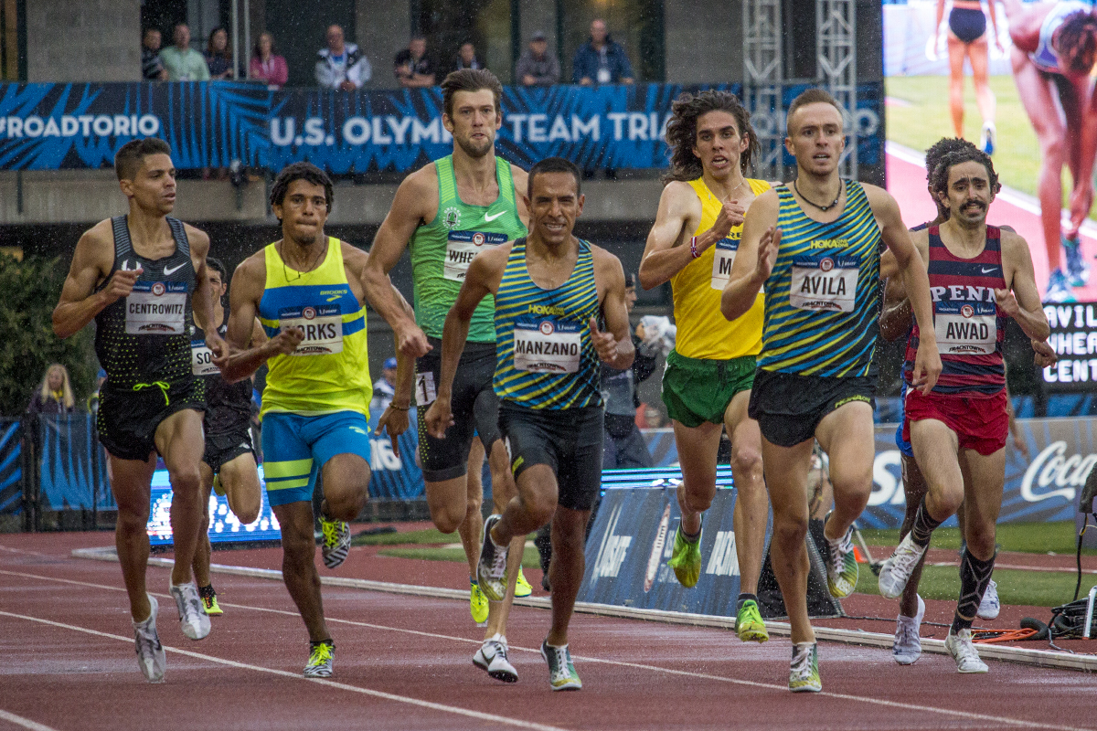 Runners compete in the prelims of the men’s 1,500 meter run. Day Seven of the U.S. Olympic Trials Track and Field were held Thursday at Hayward Field in Eugene, Ore. and will continue through July 10. Photo by Katie Pietzold