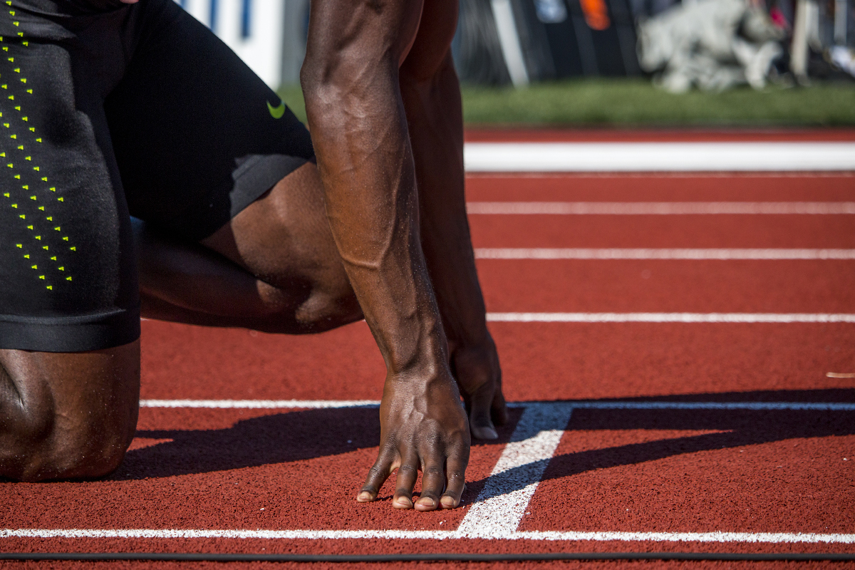Nike’s LaShawn Merritt lines up for the start of the men’s 400 meter finals. Merritt will compete in Rio after placing first in 43.97. Day Three of the U.S. Olympic Trials Track and Field were held Sunday at Hayward Field in Eugene, Ore. and will continue through July 10. Photo by Katie Pietzold