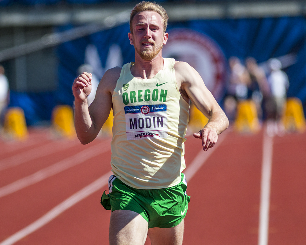 Oregon Duck Mitch Modin finishes the decathlon 100 meter dash in 10.87. Day Two of the U.S. Olympic Trials Track and Field were held on Saturday at Hayward Field in Eugene, Oregon and will continue through July 10. Photo by Katie Pietzold