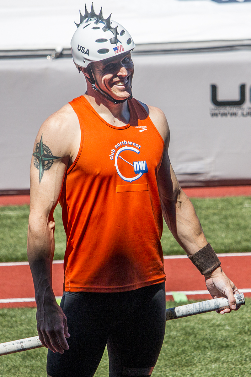 Club Northwest’s Levi Keller receives advice from his coach after a pole vaulting attempt. Day Two of the U.S. Olympic Trials Track and Field were held Saturday at Hayward Field in Eugene, Ore. and will continue through July 10. Photo by Katie Pietzold