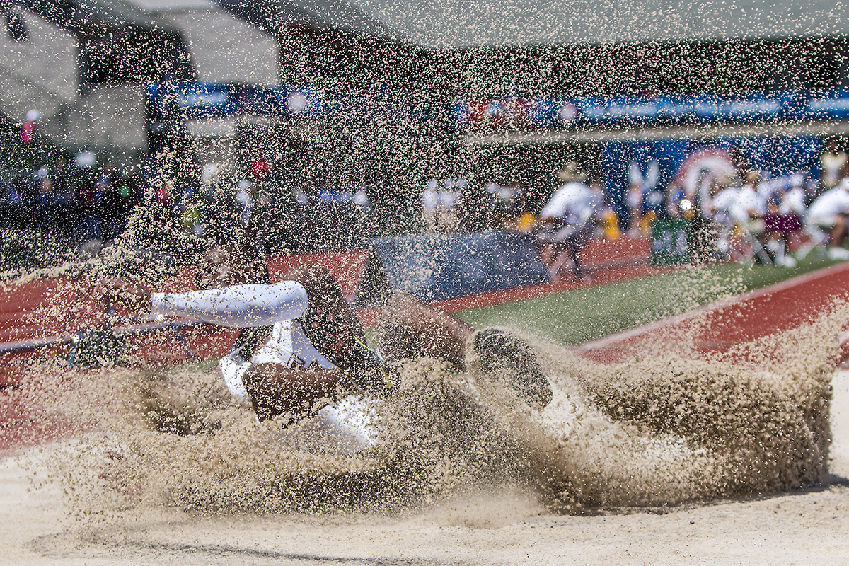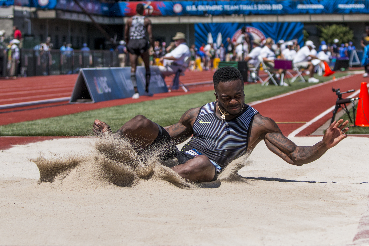 Marquise Goodwin makes an attempt during the prelims of the men’s long jump. Goodwin is a duo-athlete who also competes in the NFL as a wide receiver for the Buffalo Bills. Day Two of the U.S. Olympic Trials Track and Field were held Saturday at Hayward Field in Eugene, Ore. and will continue through July 10. Photo by Katie Pietzold