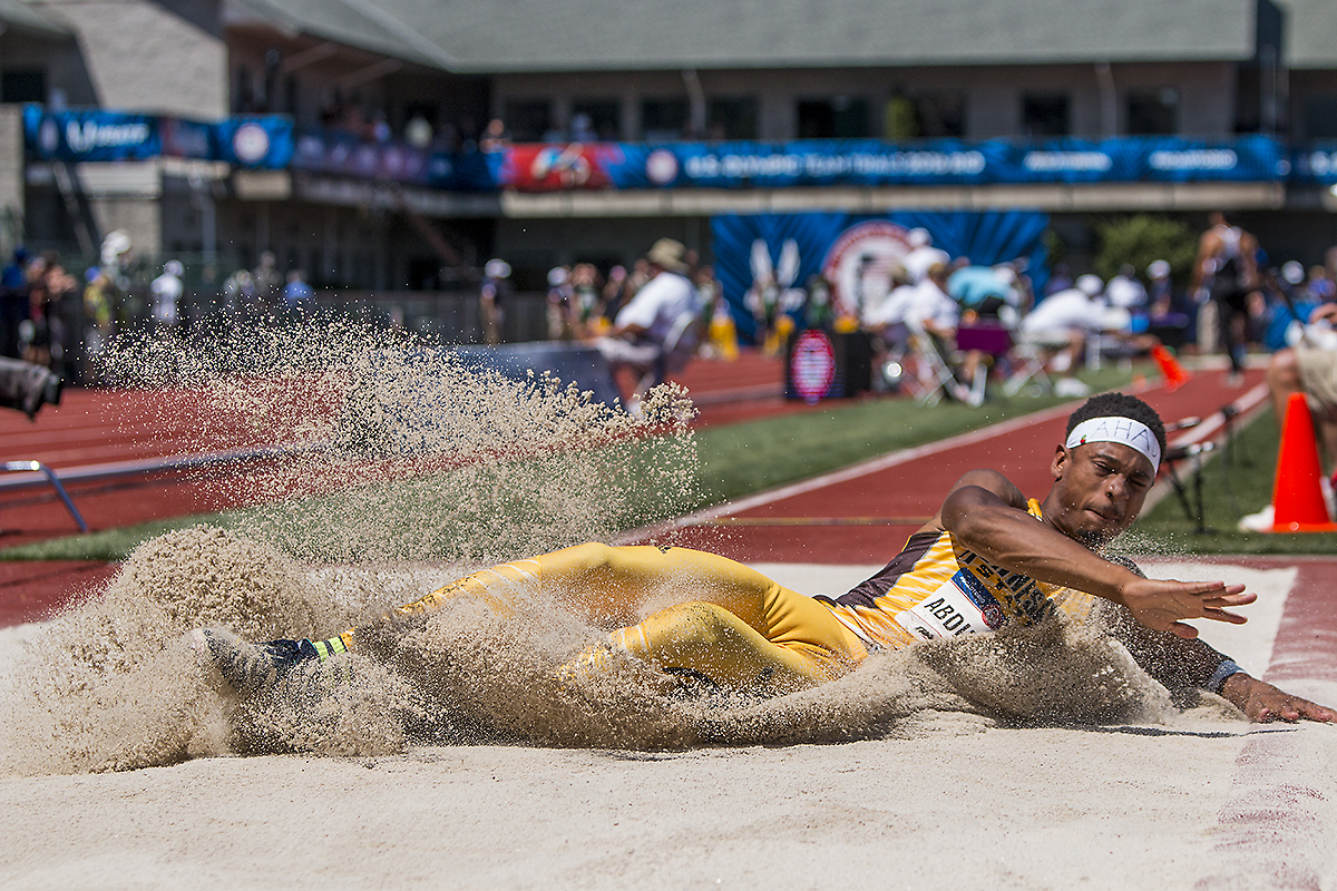 Kennesaw State’s Bilal Abdullah competes in the prelims of the men’s long jump. Day Two of the U.S. Olympic Trials Track and Field were held Saturday at Hayward Field in Eugene, Ore. and will continue through July 10. Photo by Katie Pietzold