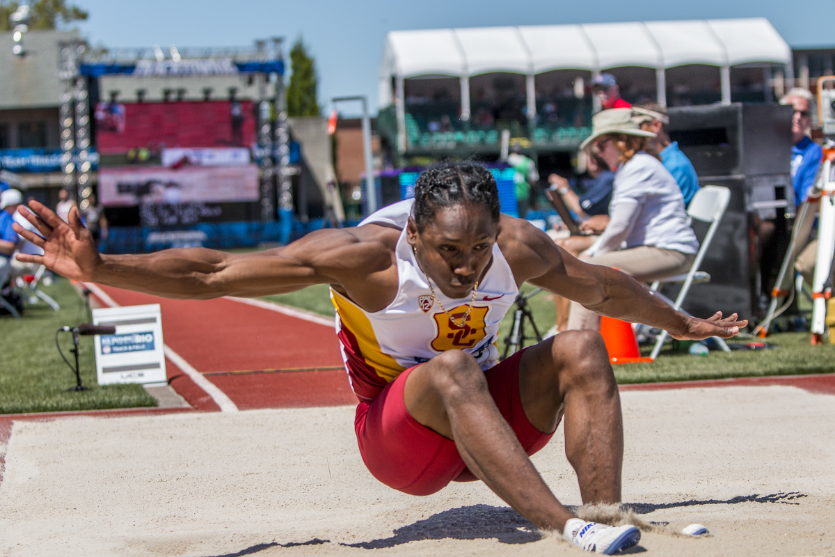 Texas A&M Aggie Will Williams competes in the prelims of the men’s long jump. Day Two of the U.S. Olympic Trials Track and Field were held Saturday at Hayward Field in Eugene, Ore. and will continue through July 10. Photo by Katie Pietzold